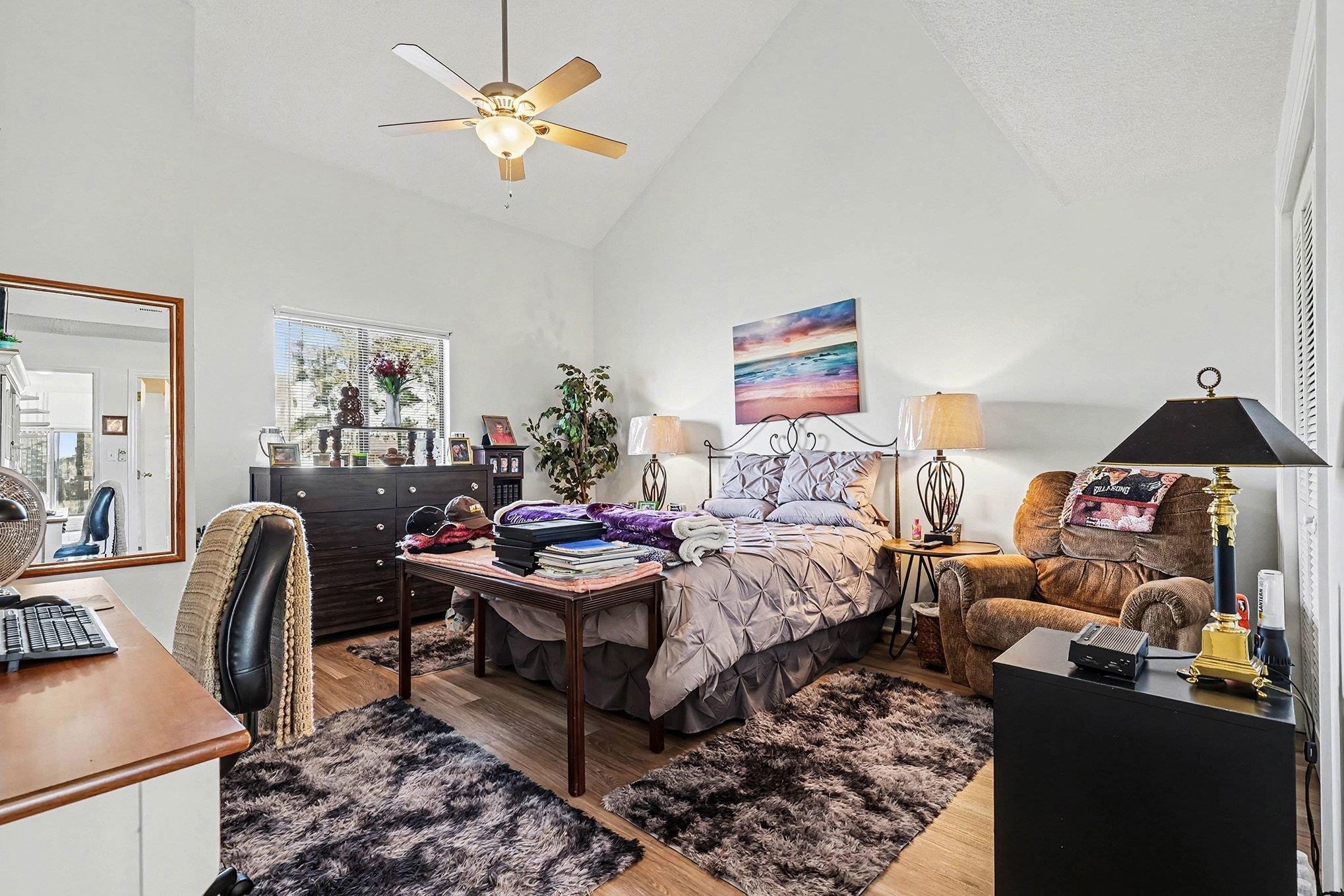 PrimaryBedroom: CeilingFans, VaultedCeilings