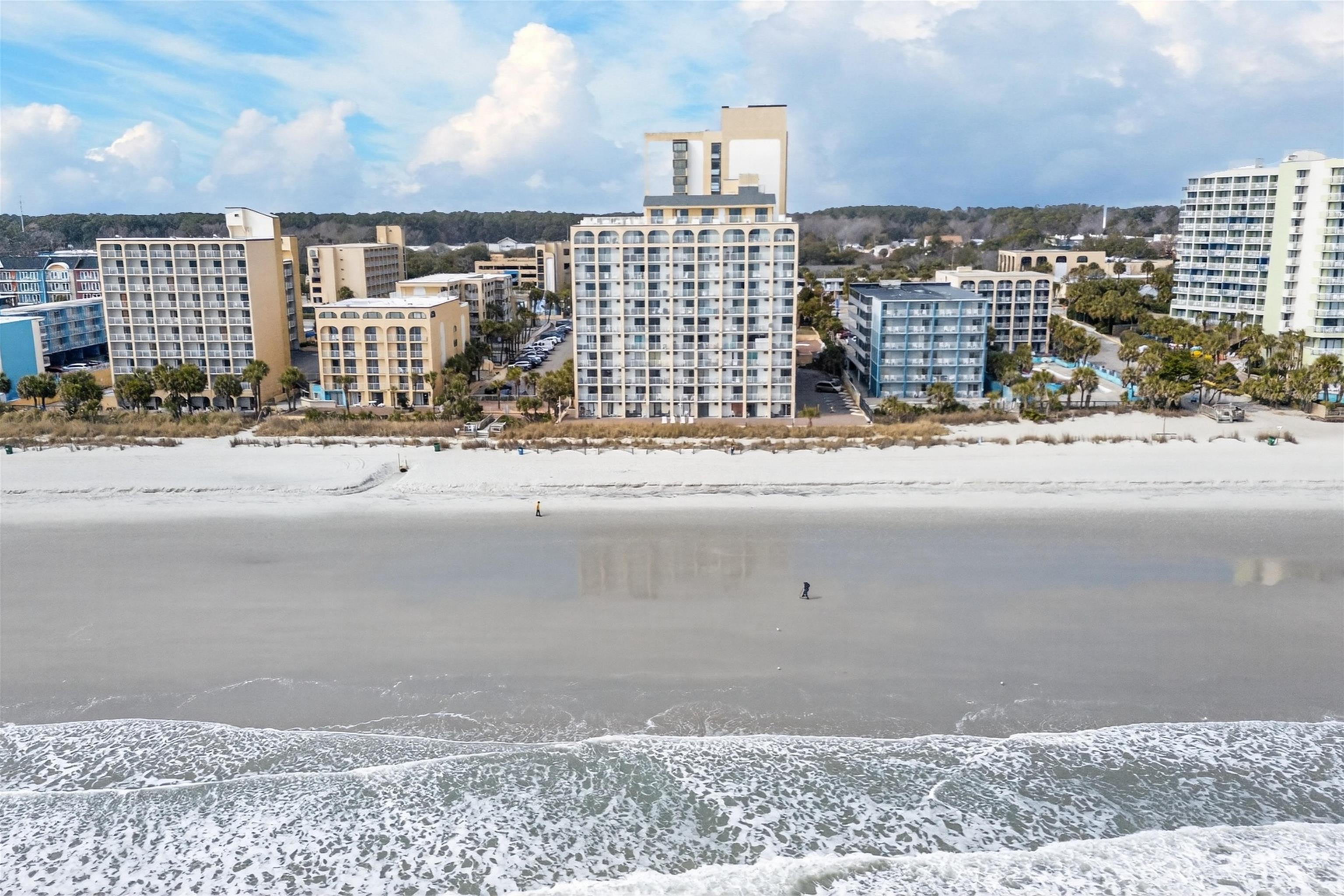 Wake up to stunning, direct oceanfront views from this fully renovated studio at Sea Mist Resort, truly one of the most beautifully updated units in the area. This complete renovation features luxury vinyl plank flooring, custom recessed lighting, updated fixtures, and upscale furnishings including a king sized bed with LED headboard and solid wood furniture. A striking focal wall offers floor to ceiling porcelain tile and a built in electric fireplace, creating a warm and modern coastal feel. The updated kitchen includes new cabinetry, stainless steel full size appliances, a porcelain tile backsplash, and dining space for four. The spa style bathroom features a custom walk in shower with Italian porcelain tile and classic hexagon flooring. Relax on your private balcony and enjoy unobstructed ocean views. Perfect as a personal beach getaway or a high performing short term rental. Conveniently located close to the shopping, dining, entertainment, and attractions that make Myrtle Beach such a popular destination.