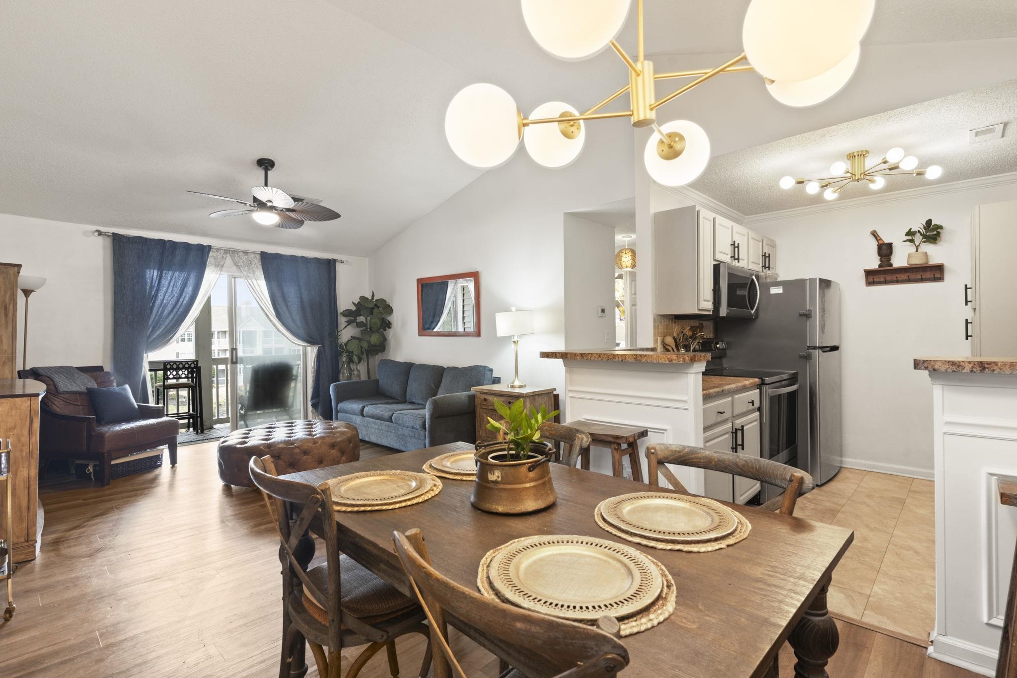 Top-floor private end unit in the gated community of Broadway Station! This spacious 2-bedroom, 2-bath condo offers stunning, unobstructed views of the pond and pool from the living room, private balcony, and both bedrooms. The open-concept floor plan is filled with natural light and features cathedral ceilings that create an airy, inviting feel. The dining area showcases elegant wainscoting, while the kitchen is equipped with newer stainless steel appliances and an extra large kitchen sink. Luxury vinyl plank flooring was installed in 2022, along with a new HVAC system and hot water heater, providing peace of mind for years to come. A newer washer and dryer are also included. This unit also features custom closet systems for optimal organization and storage, along with upgraded, spacious attic storage a rare and valuable bonus in condo living. Ideally located in the heart of Myrtle Beach, youre just a short walk to the ocean, shopping, dining, and entertainment. Relax in the evenings on your private balcony and enjoy peaceful sunset views overlooking the water. Broadway Station offers outstanding amenities including a community pool, BBQ area, fitness center, private car wash station, and a clubhouse with a full kitchen. The unit is conveniently located close to the entrance, pool, and waste disposal area. HOA dues cover insurance, water, sewer, landscaping, amenities, termite bond, security, and trash service. Private, centrally located, and move-in ready this condo truly checks all the boxes!