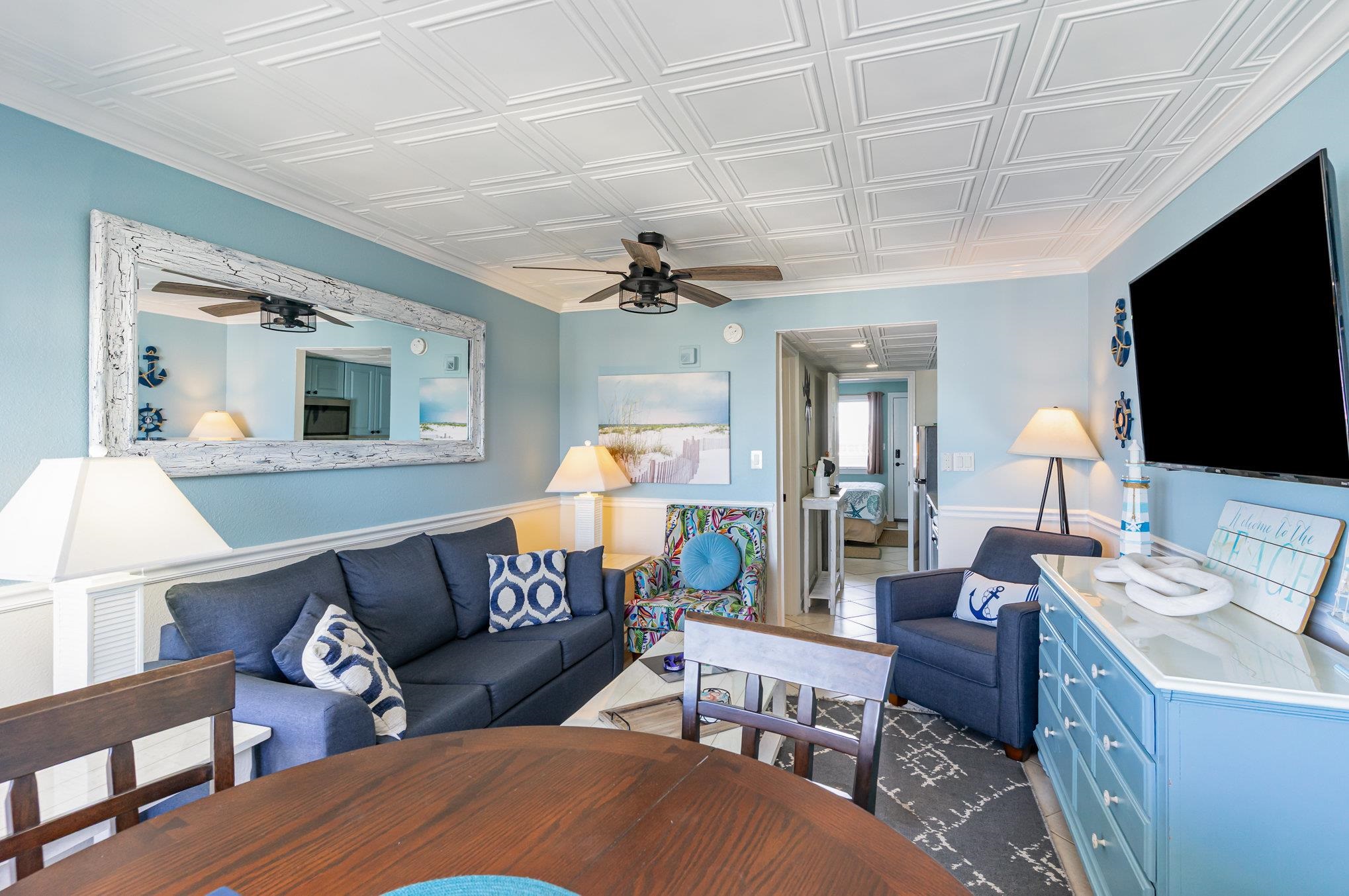 This is an upgraded, top floor, fully-furnished, one-bedroom/one-bathroom condo in the centrally-located Bluewater Resort. This impeccably maintained property has a private balcony with a stunning view of the Atlantic Ocean. Spacious and with elegant furnishings, this condo also has tile flooring throughout, a well-equipped kitchen, a beautifully updated bathroom and is located right near the elevator for easy access. This condo would make a terrific vacation spot, investment opportunity, or even residence. Bluewater Resort is right on the beach, offers indoor and outdoor pools, hot tubs, a great on-site restaurant, and a lounging area to relax and soak up the sun. The building is conveniently located in the heart of Myrtle Beach, right near all of the shopping, restaurants and area attractions that the Grand Strand has to offer.