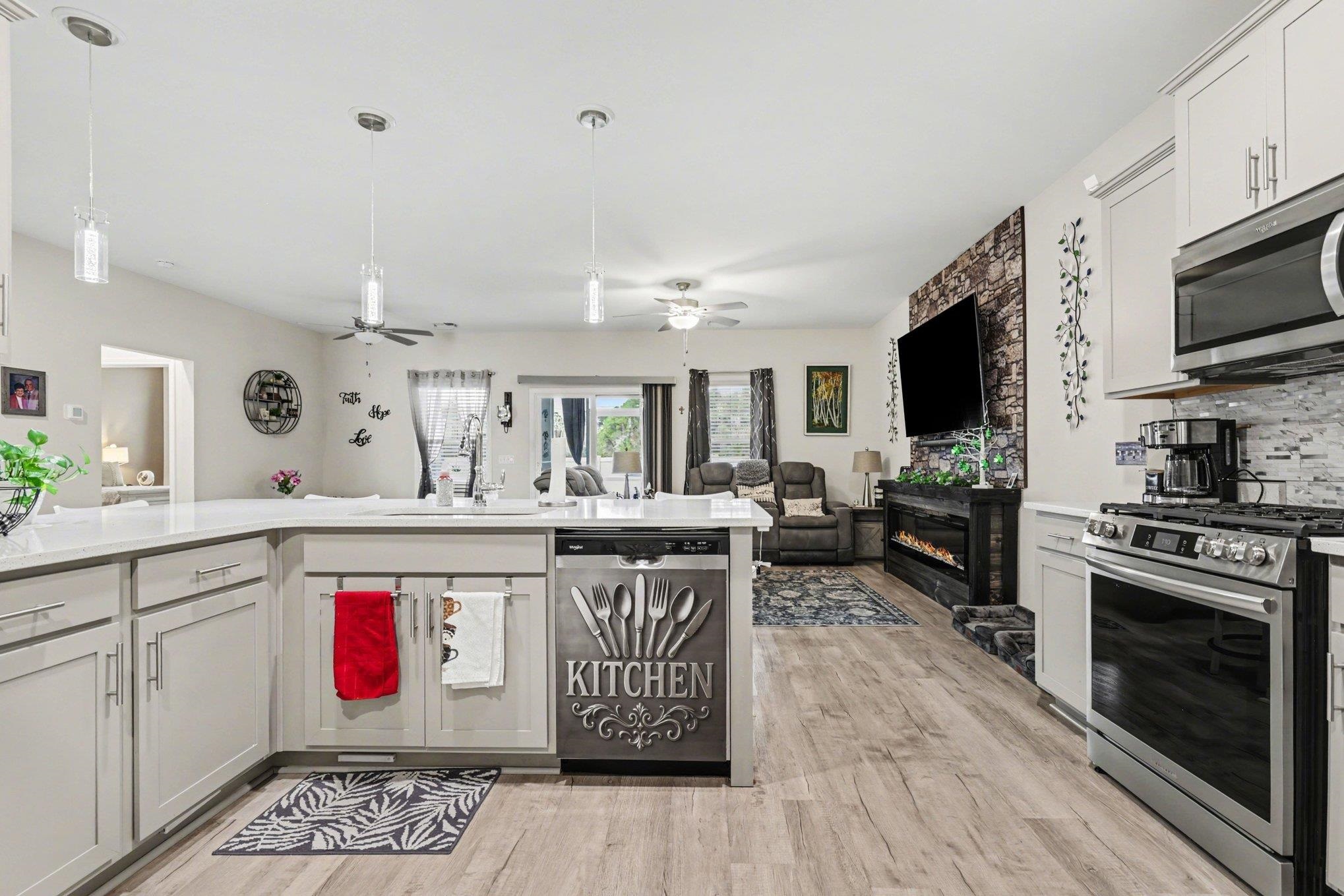 Welcome to this beautifully maintained home offering modern upgrades, open living space, and comfortable coastal living. This home features a bright and spacious open floor plan with luxury flooring throughout the and an exquiste feature wall, creating the perfect space for relaxing or entertaining. The kitchen is designed for both style and functionality with stainless steel appliances, ample cabinetry, a large peninsula with bar seating, pendant lighting, and updated track lighting. A spacious walk-in pantry provides excellent storage and convenience. The primary suite offers a peaceful retreat with a generous bedroom, large walk-in closet, and an ensuite bathroom featuring dual sink vanities and a beautifully tiled shower. Additional bedrooms provide flexible space for guests, a home office, or hobbies. Outdoor living is just as inviting with a screened-in back porch that provides the perfect place to enjoy the Carolina weather year-round. The garage features durable epoxy flooring for easy maintenance and a polished look. The garage has also been upgraded with its own air split system, making it ideal for a workshop, gym, or additional flex space. Additional upgrades include a brand new front door and smart switches throughout the home. With its thoughtful upgrades, open layout, and convenient location just minutes from North Myrtle Beach, golf courses, shopping, and dining.This move-in ready home is ready for you to enjoy. Buyer is respsonsible for verification.