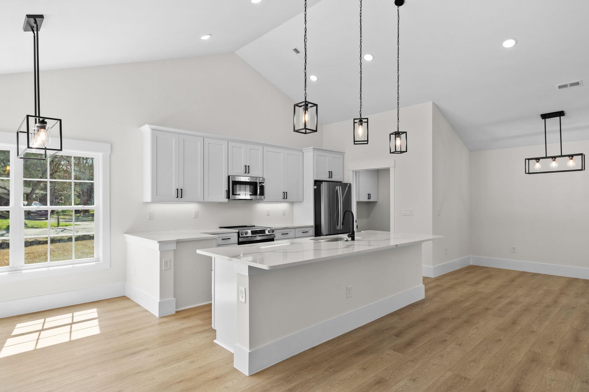 NO HOA!! Beautiful new construction home offering modern style and thoughtful design throughout! This 3 bedroom, 2 bathroom home features an open-concept floor plan with vaulted ceilings that create a bright and spacious feel from the moment you walk in. The kitchen is the heart of the home, showcasing a large island, quartz countertops, stainless steel appliances, custom cabinetry, and stylish pendant lighting perfect for both everyday living and entertaining. The primary suite provides a relaxing retreat with a double vanity, designer mirrors, and a beautifully tiled walk-in shower. Additional bedrooms offer flexibility for guests, family, or a home office. Luxury vinyl plank flooring runs throughout the main living areas, adding durability and warmth to the space. Enjoy the clean curb appeal with classic white siding, black accents, and a welcoming front entry. Situated on a generous lot with room to enjoy the outdoors while still being conveniently located near shopping, dining, and local attractions. Move-in ready and built with quality finishes this home combines comfort, style, and convenience all in one! Minutes from the Riverwalk and everything downtown Conway has to offer! Excellent school district !!!