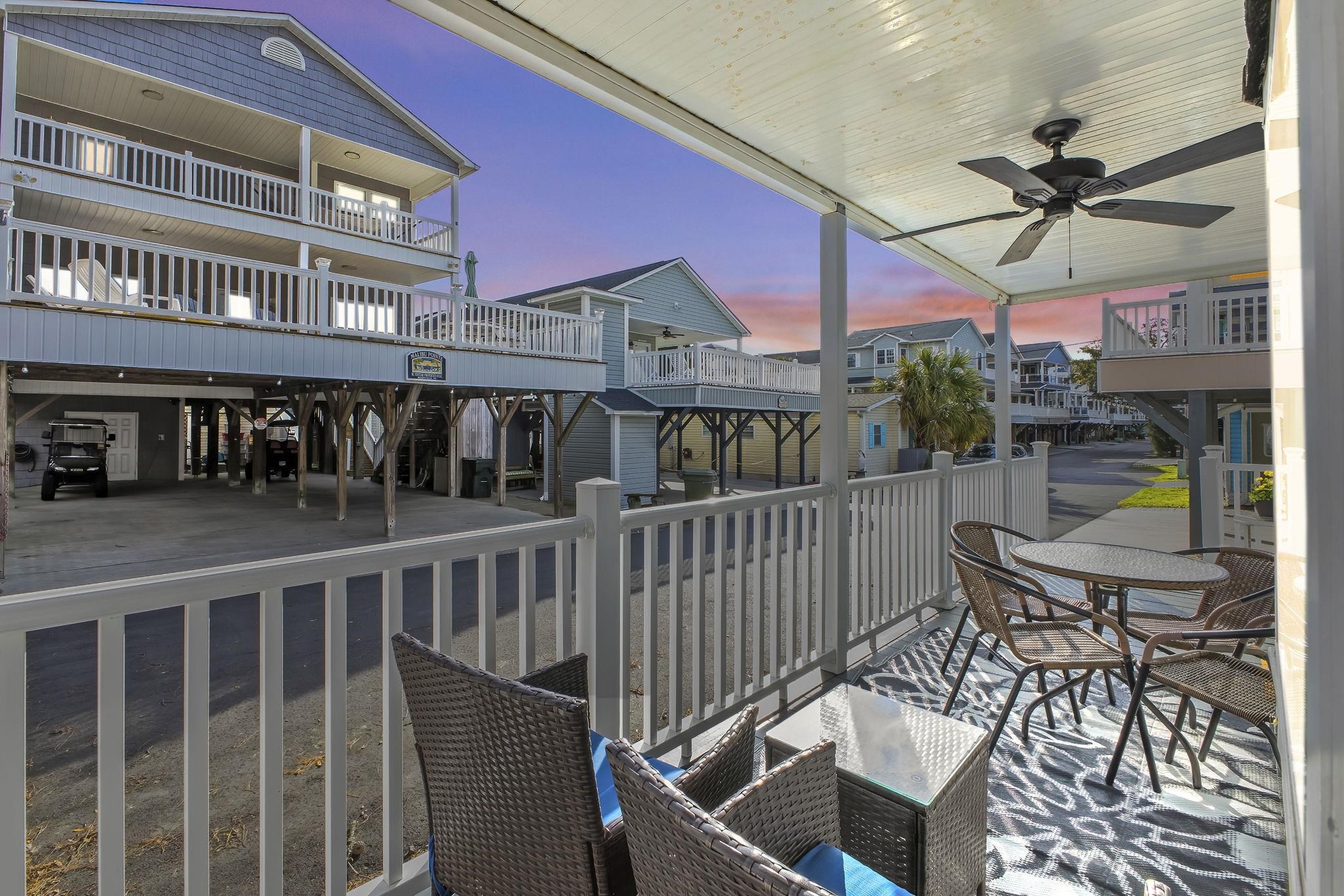 Welcome to 1562, this turnkey 3-bedroom 2 bath home is perfectly situated on a dead-end street, super close to the beautiful Atlantic Ocean and short golf cart ride to all amazing amenities like the waterpark, SandyMart or arcade. Relaxing on the covered front porch will provide morning sun and afternoon shade. East facing side deck is perfect for someone looking to work on their tan! Private fenced back yard is a rare find in Ocean Lakes and 1562 has it! The oversize outside building has storage on the left for a golf cart and your personal belongings. The right side has laundry room with full-size washer/dryer and water heater. Entering inside you have a coastal decorated living room and ceiling fan, to the right is the dining area and fully stocked kitchen. Down the hall you have a bunk room on the left, across the hall is full bath #1 with walk-in tiled shower, further down the hall on the right is bedroom #2 with queen bed, and finally at the end of the hall is the primary bedroom with king adjustable bed, closet, and attached full bath #2. Primary bath recently had the soaker tub reglazed and sealed. Outside shower with hot/cold water. Entire home has been deep cleaned and ready for rental season including pressure washed!. Don't delay, a home in this location and at this price will not last long. Ask agent for rental information. Golf cart is not included but negotiable.
