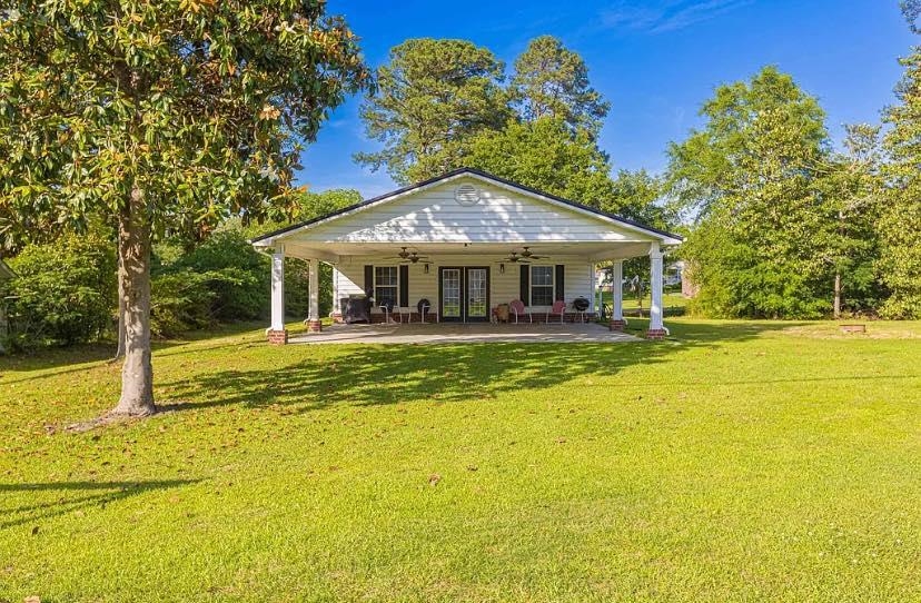 Located just outside the city limits of Andrews, SC, this impressive brick residence sits on a spacious, well-maintained lot. This home features three bedrooms and two full bathrooms, with an open living area that seamlessly connects the living/dining room, den, and kitchen. This home has been well-maintained and combines wood, tile, and carpet flooring. Freshly painted cabinets in the kitchen with granite countertops, tile showers in the bathrooms, a spacious mudroom, and much more. The property's standout feature is a remarkable 900 sq. ft. enclosed space behind the main home, complete with a full bathroom. With a large covered area that functions as an oversized porch, this space boasts a full kitchen, pine walls and ceilings, and recessed lighting. This additional space has endless opportunities for entertaining, an additional area for guests, and the list goes on. Furthermore, the property includes a 530 sq. ft. enclosed utility shed with a lean-to. The additional dwelling can be accessed from Lakewood Drive and has a separate driveway. Lot size/House Sq ft to be verified by buyer(s)/buyer's agent.