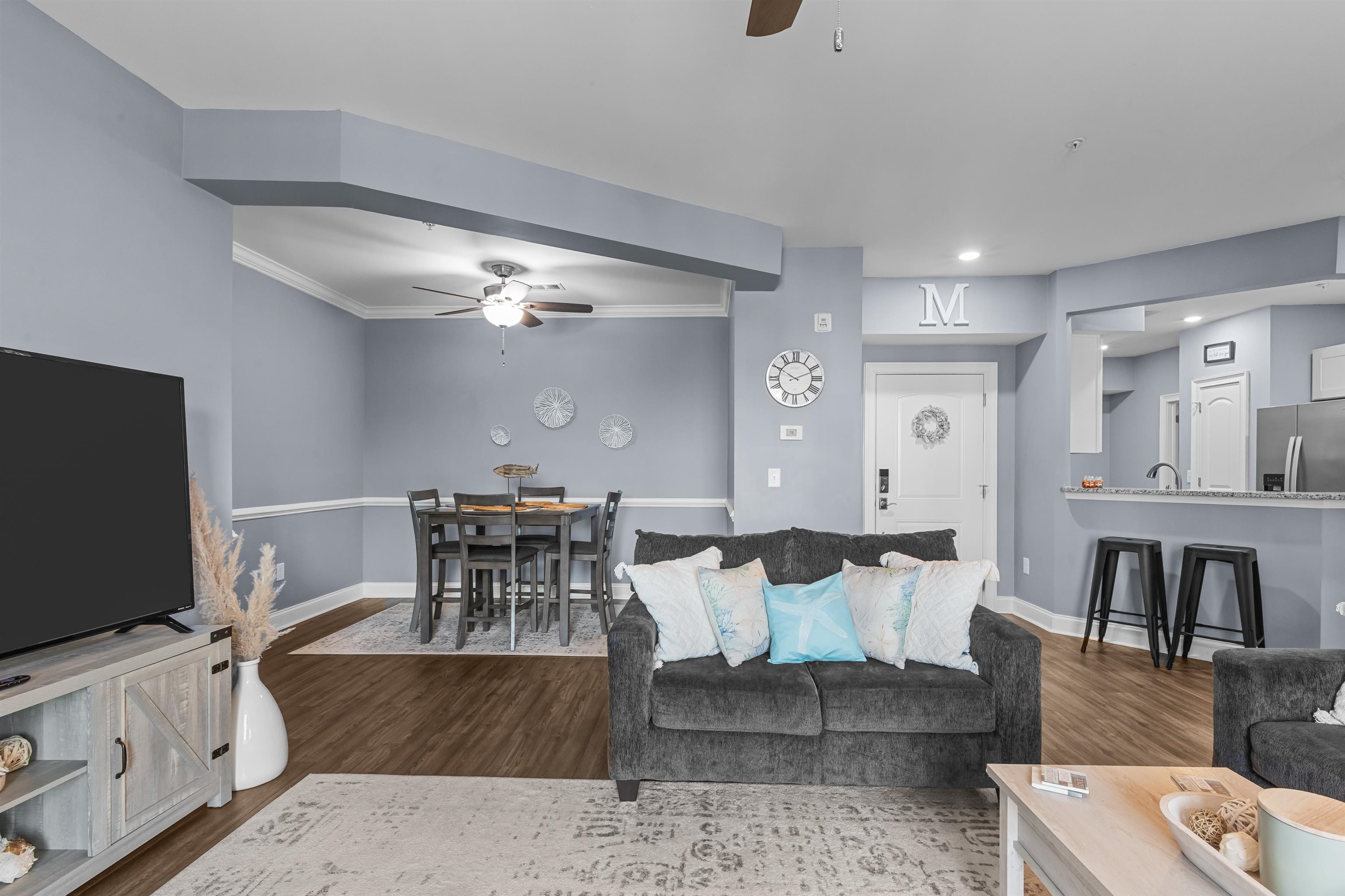 Interior Features: CeilingFans, DualSinks, Furnished, SplitBedrooms, SeparateShower, WalkInClosets, WindowTreatments, BreakfastBar, StainlessSteelAppliances, SolidSurfaceCounters