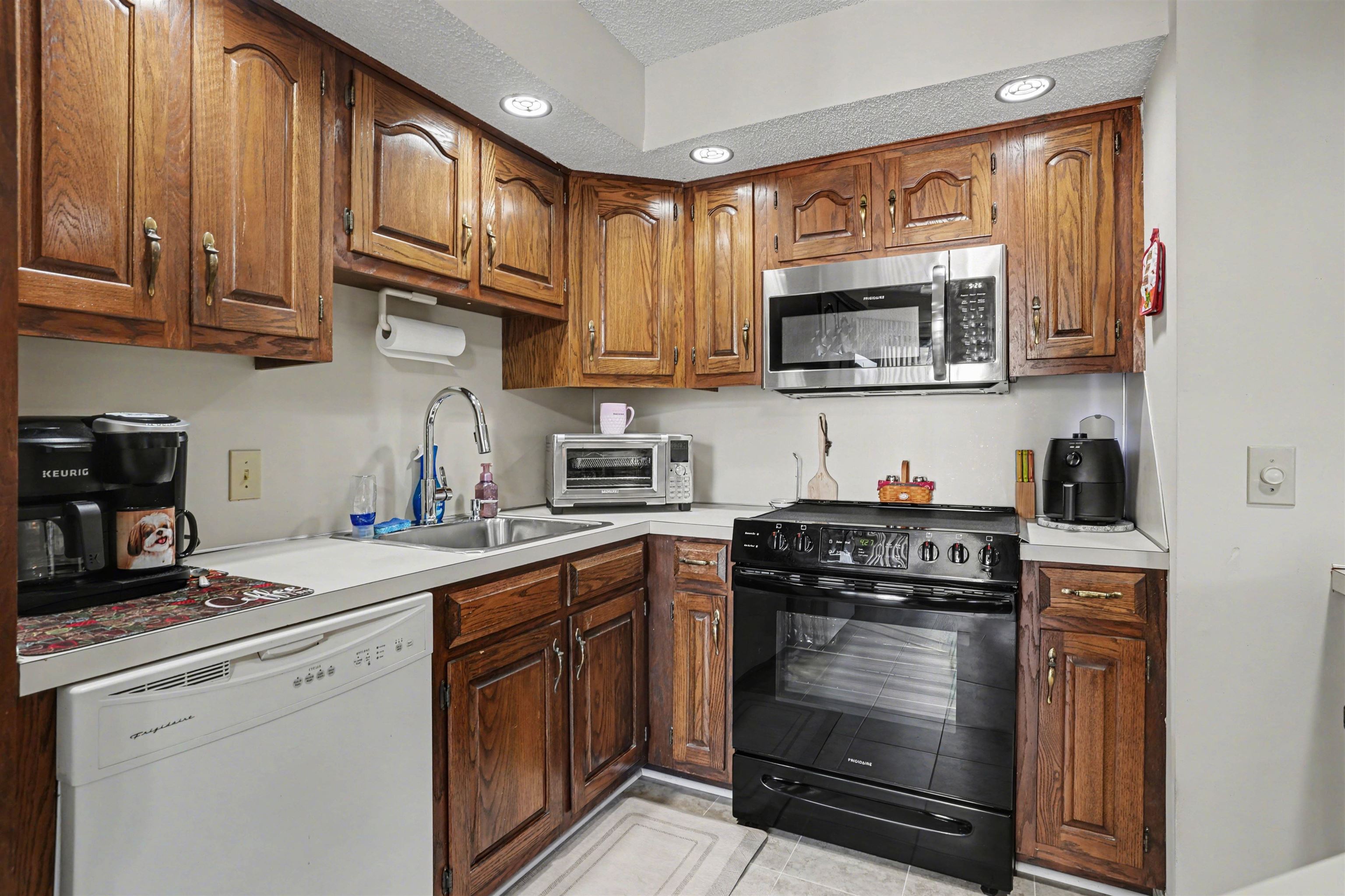 Looking for a hideaway near the beach? This bright one-bedroom end unit has a lot to offer. The spacious living room with brick fireplace is open to the kitchen with breakfast bar. Upgrades include newer HVAC (2024), LVP flooring, range, and microwave. Decking has been replaced front and back. Located in the Little River section of North Myrtle Beach, access to Cherry Grove Beach and North Myrtle Beach attractions, restaurants and shopping is just a few minutes away. Seller is leaving furniture (with some exclusions) so you can move right in! Great for a 2nd home, year-round living or investing!