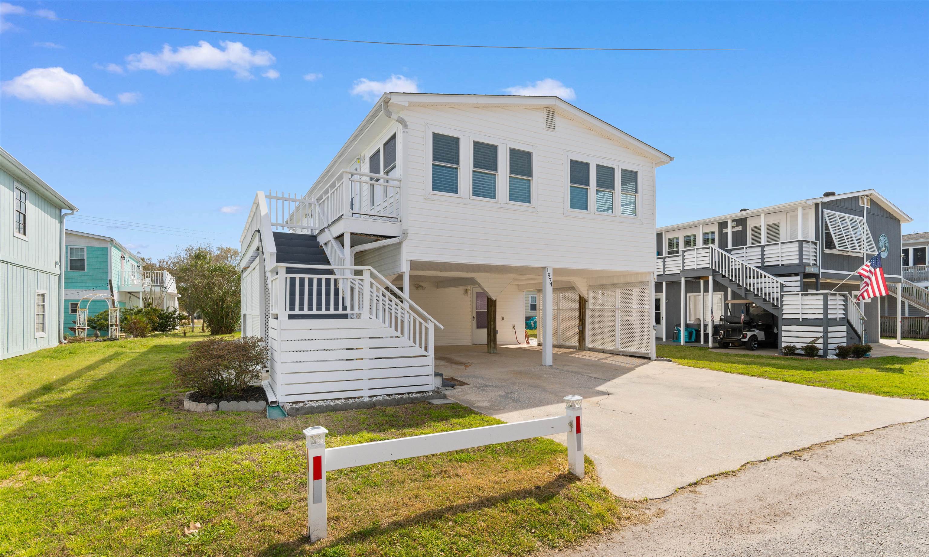Nestled inside the gated, 180-acre oceanfront community of Oceanside Village in Surfside Beach, this raised beach home offers exceptional flexibility with 3 bedrooms and 3 full baths total, including a separate apartment downstairs. Located east of Highway 17, this property is just a short walk or golf cart ride to the Atlantic Ocean, private beach access, and the iconic Conch Cafe. The main living area upstairs features 2 bedrooms and 2 full baths, along with a spacious open-concept layout that connects the living room, dining area, and kitchen for easy coastal living. Downstairs, the private apartment has its own entrance, 1 additional bedroom, living room, 1 full bath, and excellent potential for guests, multigenerational living, or rental income. There is also an additional flex space off the living room that could easily be converted into another bedroom, office, or bunk room. Outside, enjoy multiple areas to relax and entertain, including a large front porch, back deck, outdoor shower, and shaded space beneath the home to enjoy the ocean breeze and Carolina sunsets. Oceanside Village is a true local favorite, offering an impressive list of amenities including private beach access and parking, 24-hour security, indoor and outdoor pools, a childrens water park, stocked fishing lakes, picnic areas, playground, bocce courts, volleyball, fitness room, library, community center, weekly activities, holiday events, and church services. Whether you are searching for a full-time residence, vacation getaway, or investment property with strong rental potential, this beach bungalow is packed with opportunity in one of Surfside Beachs most loved oceanfront communities.