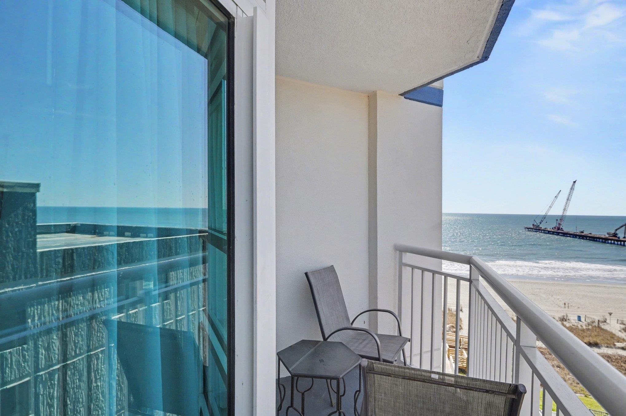 This is a beautiful, sun-filled, fully furnished 1-bedroom, 1-bath ocean view condo in the heart of Myrtle Beach! This updated unit features an open floor plan with tile flooring throughout, and includes a washer/dryer for added convenience. The full kitchen offers granite countertops, all appliances, and a breakfast bar, ideal for casual dining. The spacious bedroom includes a large ensuite bath and a private balcony with stunning ocean views, perfect for relaxing to the sound of the waves. This condo would make an incredible primary residence, investment property or vacation home. Located at the Carolinian Beach Resort, enjoy top-tier amenities including indoor/outdoor pools, a lazy river, hot tub, kiddie pool, and fitness center. Just steps from the beach and minutes to Broadway at the Beach, Topgolf, dining, shopping, and more!
