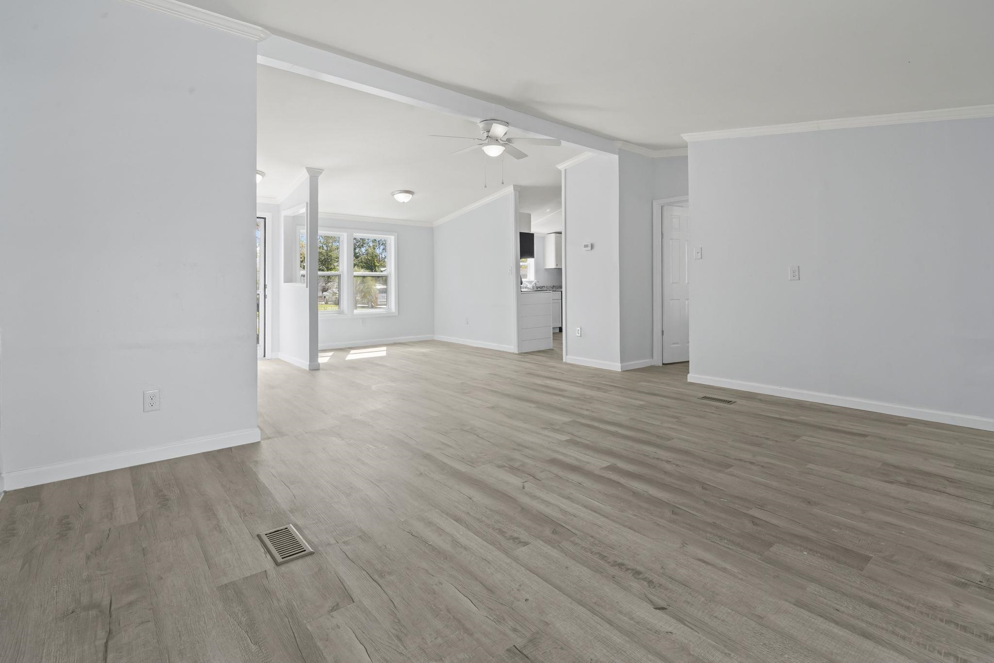 This newly remodeled double-wide manufactured home offers 3 bedrooms and 2 full baths, combining modern updates with comfortable, spacious living. Situated on a desirable corner lot, the property provides added privacy, extra yard space, and great curb appeal. Inside, you'll find a bright, open floor plan with updated flooring, fresh paint, and a welcoming living area that flows seamlessly into the dining space and kitchen, perfect for entertaining or everyday living. The kitchen features upgraded cabinetry, ample counter space, and modern appliances. The primary suite includes a private bath, while two additional bedrooms and a second full bath provide flexibility for guests, or a home office. No HOA! EVERYTHING is brand new including but not limited to roof - house and garage, siding, insulation, windows, HVAC, H20 Heater, garage doors and opener, appliances and much more!. Outside, the property continues to impress with a detached 2-car garage, ideal for parking, storage, or a workshop. The spacious yard offers plenty of room for outdoor activities, gardening, or simply enjoying the peaceful setting. This move-in-ready home is a fantastic opportunity for those seeking affordability, space, and modern upgrades, all in a convenient location.