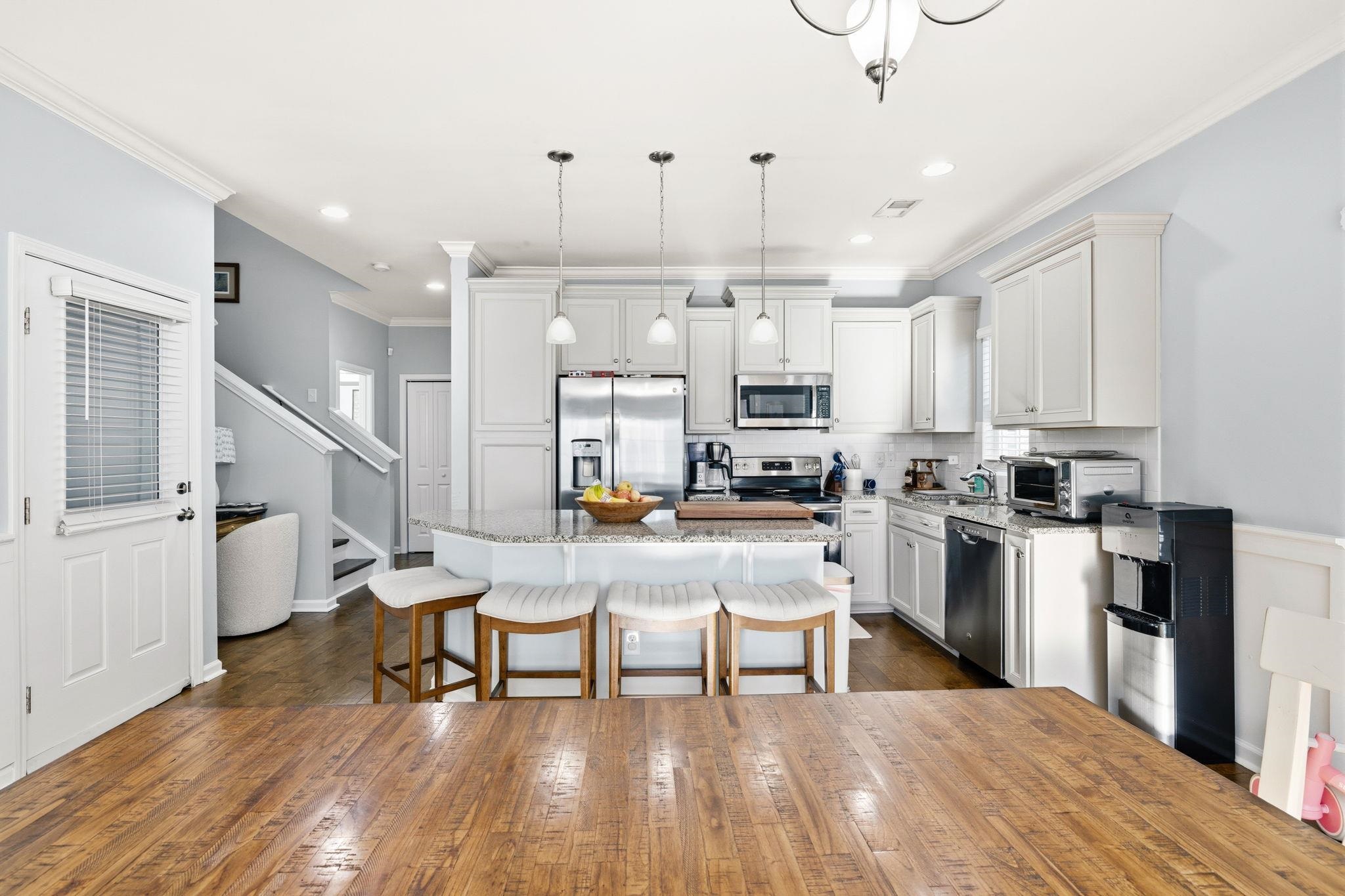 This beautifully appointed home offers 3 bedrooms and 2.5 baths with a bright, open layout designed for comfortable coastal living. The interior showcases enhanced wood flooring throughout the main living areas along with elegant crown molding in the living room, dining area, kitchen, and primary suite. The spacious kitchen is both functional and inviting, featuring upgraded cabinetry, granite countertops, a tiled backsplash, and a large work island with breakfast barperfect for entertaining. The main-level primary suite provides convenience and privacy, complete with en-suite bath offering a custom tiled walk-in shower and a dual-sink vanity. Upstairs, two additional bedrooms share a Jack-and-Jill bath, creating an ideal layout for guests or family. Natural light fills the home, enhancing the airy feel throughout. Located in the desirable Cottages at Marker 350, this community offers a true Intracoastal Waterway lifestyle, including access to a private dock and pier with day-use boat docking. Conveniently situated near the beaches of Cherry Grove and North Myrtle Beach, as well as an abundance of dining, shopping, golf, and waterfront activities, this home delivers the perfect blend of coastal charm and everyday convenience. Schedule your private showing today!