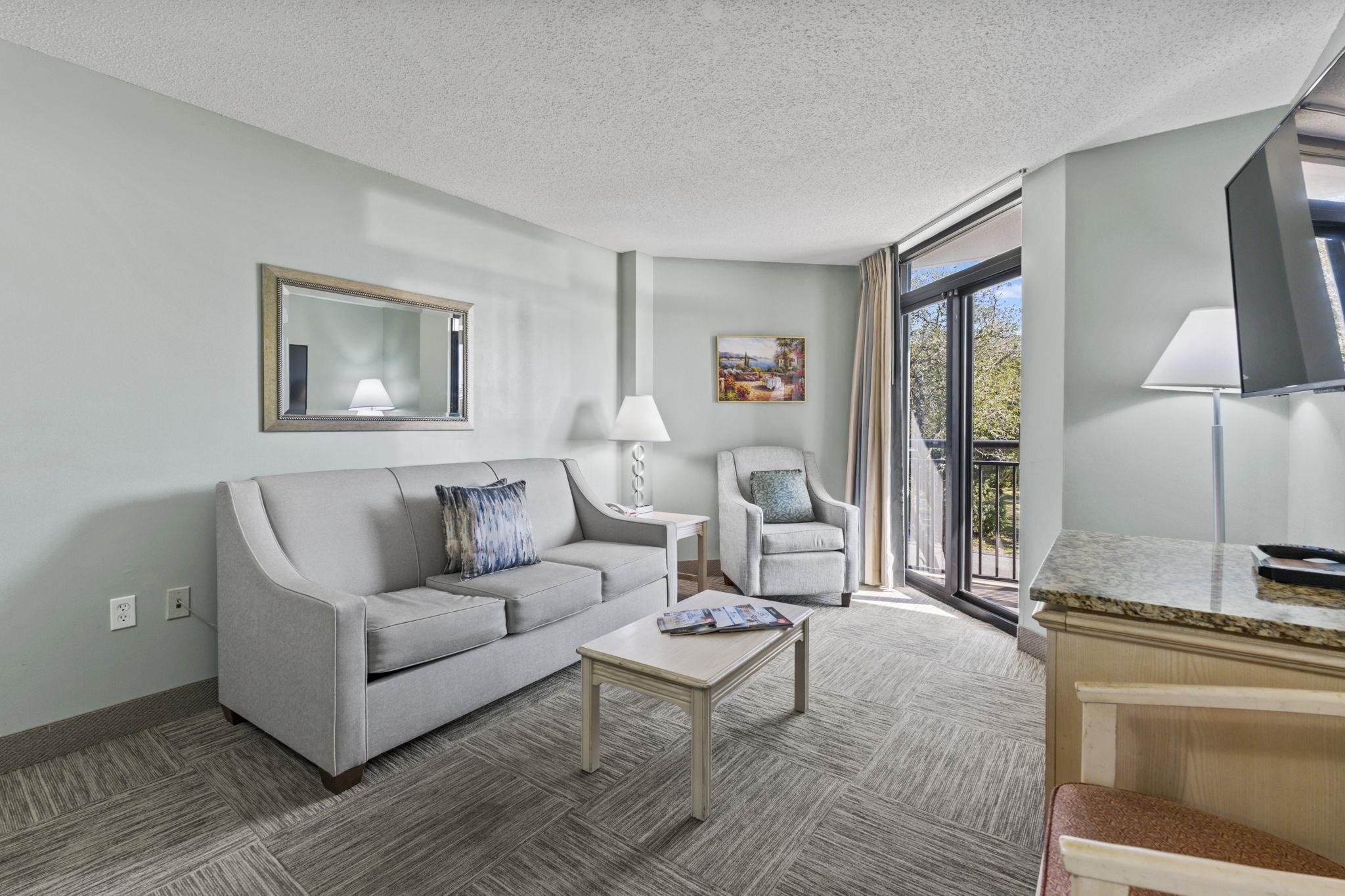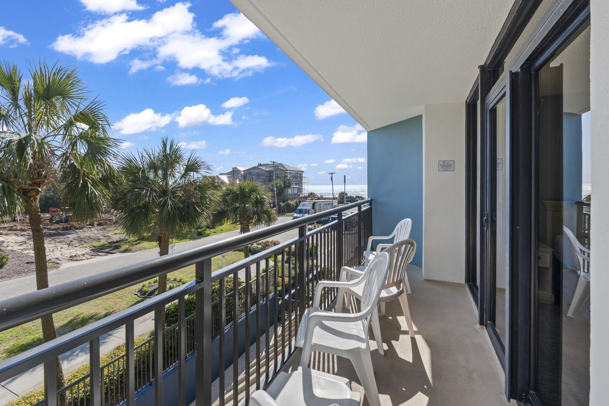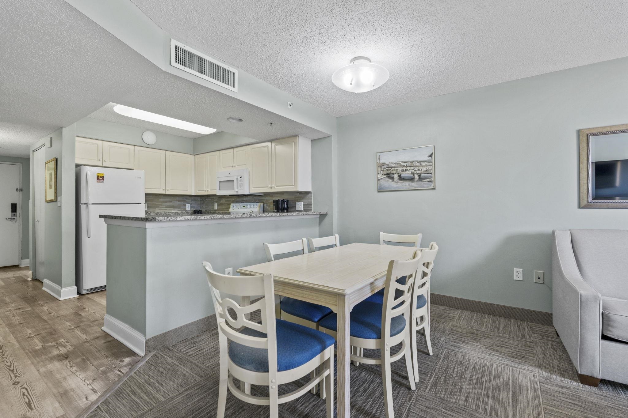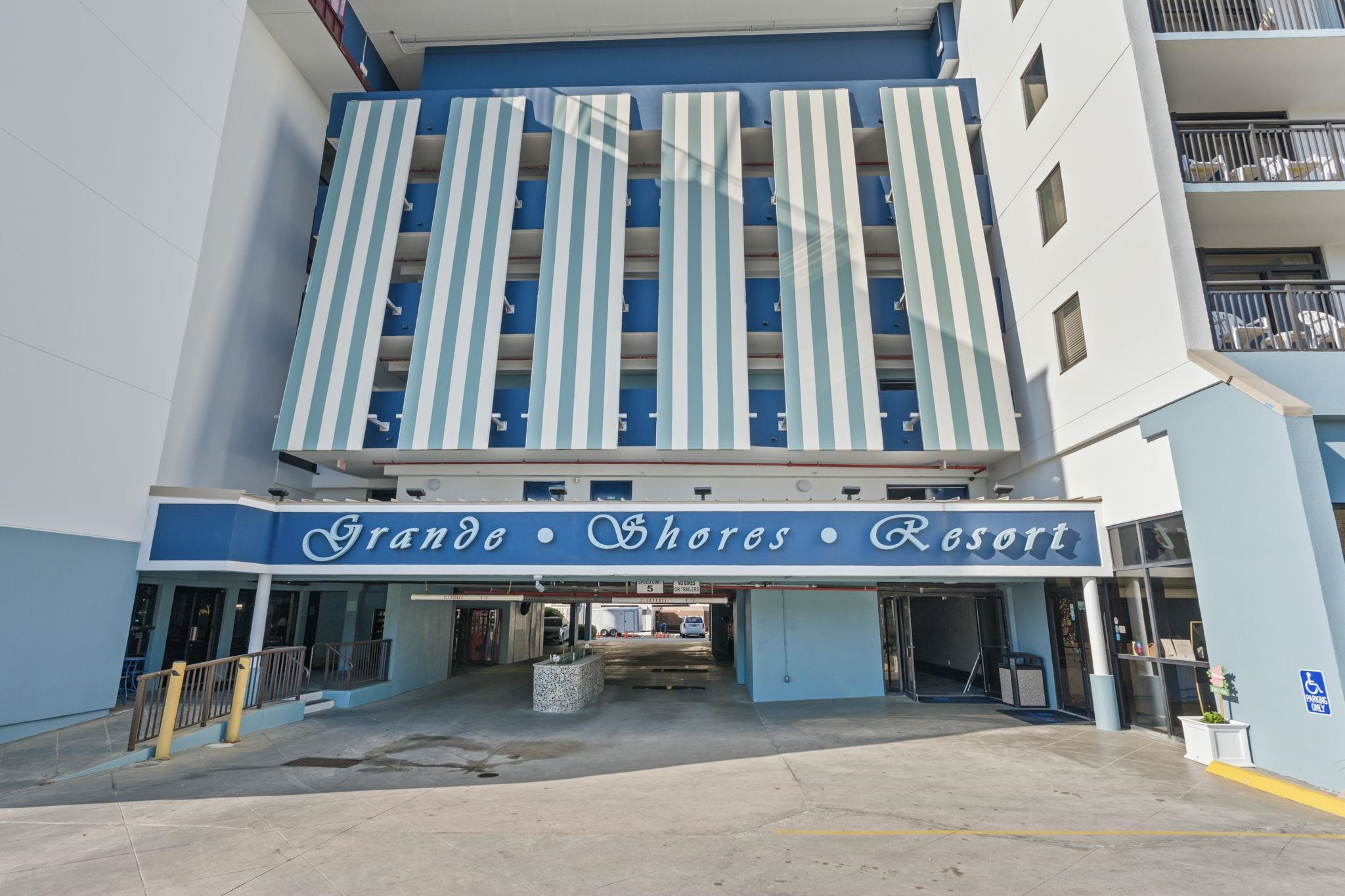 One of the BEST values for an ocean view unit in one of Myrtle Beach's greatest hidden gems - Grande Shores! Enjoy stunning ocean views from this beautifully updated 2-bedroom, 2-bath condo, just steps from the sand. Fully furnished and completely turn key, this unit offers a stylish coastal design and a bright, open layout thats perfect as a vacation getaway or income-producing rental. Enjoy a fantastic open floorplan, with flooring that's been replaced recently throughout the main living areas. The kitchen features an abundance of counter space, granite countertops, a stainless steel sink, and new backsplash! Enjoy two access points to your LARGE overszied balcony, from both the living area, and the primary suite. The primary bedroom has its own bathroom! The second bedroom boasts recently installed plantation shutters and two full size beds, maximizing rental potential. The unit is also equipped with an owners closet and washer and dryer. Grande Shores offers an impressive lineup of amenities, including on-site dining at Shoreline Caf, a fitness center, indoor and outdoor pools, lazy rivers, hot tubs, and seasonal kids activities. The rooftop pool area is a true highlight, delivering breathtaking panoramic views of the coastline. Whether youre searching for a second home or a rental investment, this well-priced condo stands out as a fantastic opportunity in an amenity-rich oceanfront resort.