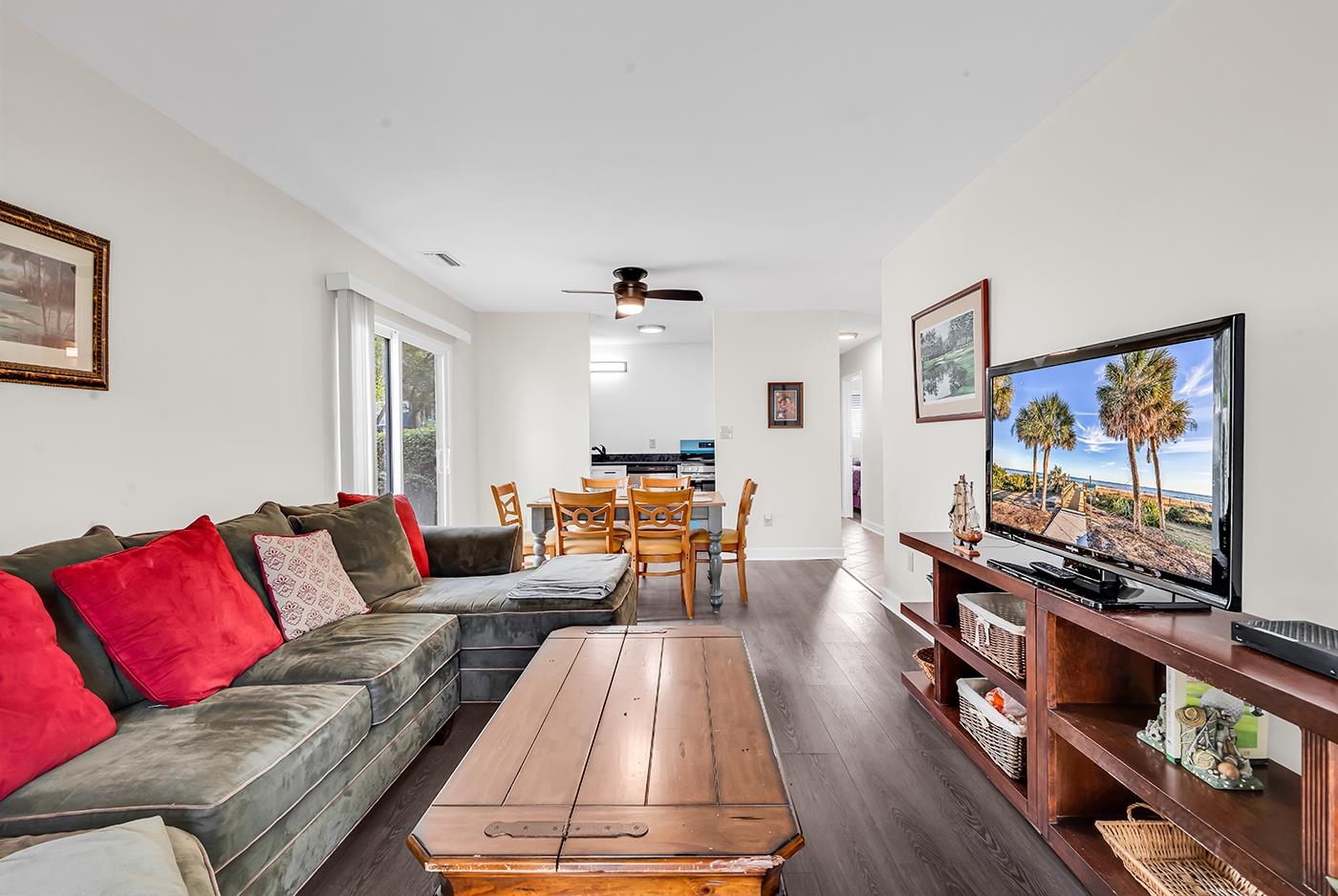 Welcome to this beautiful newly renovated 3 bedroom, 2 bath ground floor condominium located only 1.5 blocks from the beautiful blue Atlantic Ocean. Home is ideally located within walking distance to grocery, pharmacy, restaurants and stores. A short distance to local Grand Strand Hospital on 82nd Ave. This home is being sold totally furnished and is turnkey. Renovations include all new stylish LVP flooring and paint throughout the home. The kitchen displays perfectly with all new stainless steel appliances, beautiful new cabinets and countertops. New HVAC and all air ducts have been professionally cleaned. Owners have thoughtfully put all new outlets and switches. Beautiful new patio doors that open up to nice views of the courtyard and pool. All new windows, window treatments and doors have been installed which make this condo light and airy. Both bathrooms have new vanities and mirrors and comes complete with in unit washer and dryer. This condominium is being sold totally furnished ad can sleep up to 8. Large storage shed on patio for storing all your beach chairs, umbrellas, towels and grilling needs. HOA includes cable and internet. Common areas include pool access for owners and guests, grills and patio tables, as well as a gazebo overlooking the pool. Enjoy the ease of 1st floor walk out to the pool and parking. Guest parking available and owner is eligible to obtain City of Myrtle Beach parking permits which enjoy free parking at all beach public access parking lots. This home has not been a rental since 2023. Home is perfect for permanent residence or rental. Permanent residents eligible to receive lower taxes. Come enjoy owning a slice of Beach life in this wonderful community of Watermark. Square footage is approximate and not guaranteed. Buyers responsible for verification.