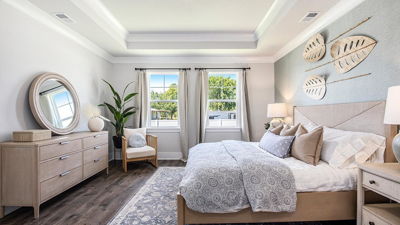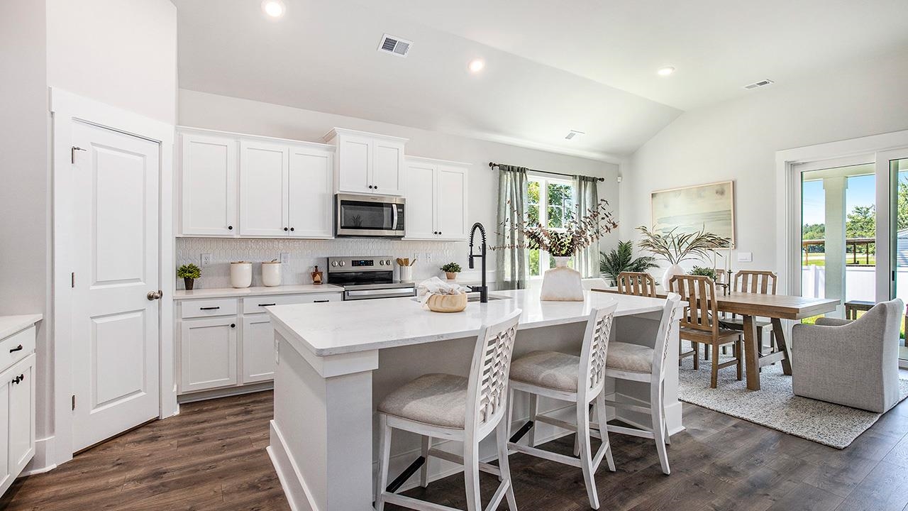 The Litchfield Plan - Where Style Meets Smart Living Welcome to The Litchfield, a thoughtfully crafted single-level home blending comfort, elegance, and modern convenience. From the moment you step onto the inviting front porch, youll feel the warmth and charm that make this home so desirable. Step inside to a stunning open-concept layout featuring soaring 11' ceilings, a spacious great room, and a seamless flow into the gourmet kitchen and dining area. Perfect for entertaining or everyday living, this space is filled with natural light thanks to a 4-panel sliding glass door that opens to a covered rear porchan ideal spot to relax and enjoy the outdoors. The chef-inspired kitchen is both stylish and functional, boasting a large island with breakfast bar, quartz countertops, stainless steel appliances, and a corner walk-in pantry for all your storage needs. The private owners suite, tucked away at the back of the home, is a true retreat. Featuring a tray ceiling, dual walk-in closets, a double vanity, separate linen closet, and a luxurious 5' tile shower, this suite offers space and serenity. Three additional bedrooms are thoughtfully positioned at the front of the home to provide separation and privacy. This home has a spacious 2-car garage with opener. And with Americas Smart Home technology package included, youll enjoy ultimate convenience and peace of mindcontrol your thermostat, front door light and lock, and video doorbell right from your smartphone. The Litchfield Plan - Timeless design. Smart living. Welcome home. *Photos are of a similar Litchfield home. (Home and community information, including pricing, included features, terms, availability and amenities, are subject to change prior to sale at any time without notice or obligation. Square footages are approximate. Pictures, photographs, colors, features, and sizes are for illustration purposes only and will vary from the homes as built. Equal housing opportunity builder.)